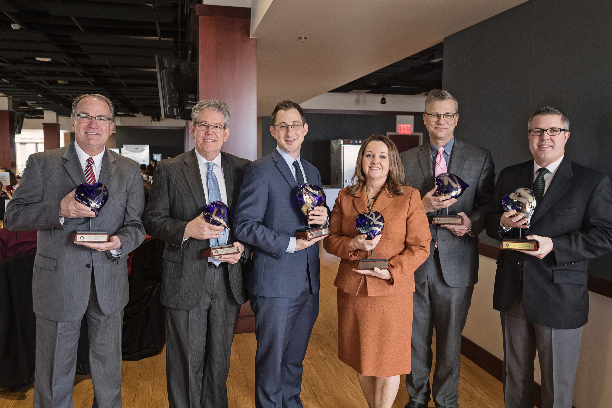 Pinnacle Member Honors Presented at Awards Luncheon: (left to right): President Keith Newman (SNU), Travis Jones (CDP), Daniel Yunker (Kimray Inc); Jami Fenner (Hobby Lobby), Brian Shore (ONE Gas) and Brandon Peck (Devon Energy)