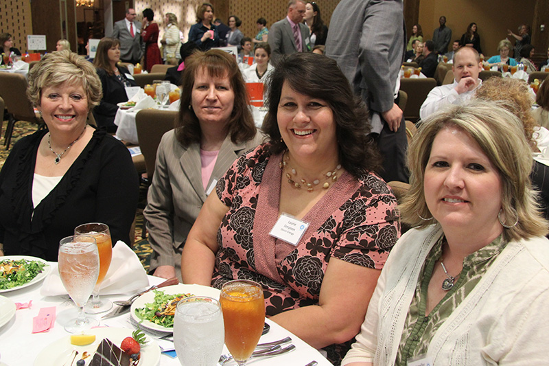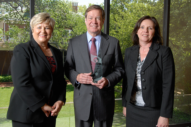 | Janice Dobbs (left) and Carla Brockman (right) congratulate Mr. Nichols for his achievement. |