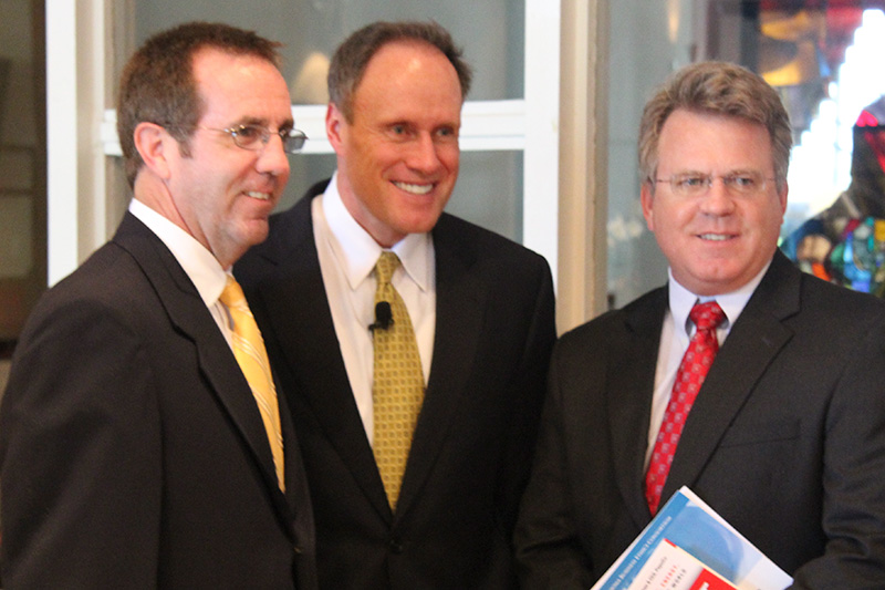 Terry May of MESA, Stephen M.R. covey and Gary Huneryager of OGE. |