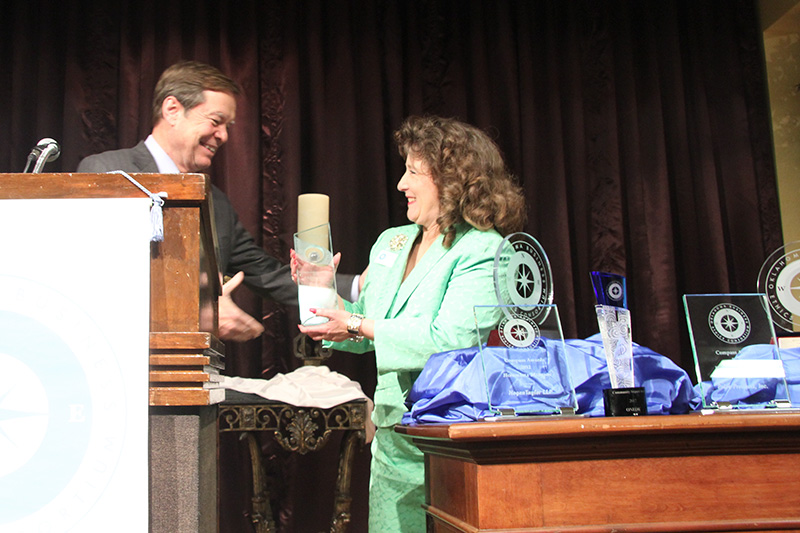 | ONEOK's Neal Lehman accepts Community Impact Award from Compass Award Chairperson, Mike Strong. |